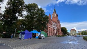 Na stoiskach zlokalizowanych koło Ratusza na odwiedzających czekało mnóstwo niespodzianek i atrakcji. Promowano alternatywny transport dla samochodów, a zainteresowani mogli skorzystać z przejażdżki rowerem typu cargo.